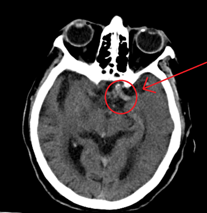 Case report: We had a patient come in for a chief complaint of sudden onset right sided weakness, on eliquis for atrial fibrillation, found altered at home, hypertensive in the systolic 200’s en route. We were suspecting a massive head bleed; instead, the CT non contrast revealed this classic sign of hyperdense MCA. Patient was prepped for an emergent thrombectomy.