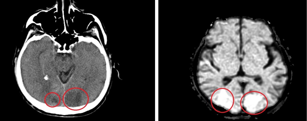 Posterior reversible encephalopathy syndrome (PRES) is a clinico-radiological syndrome characterized by a headache, seizures, altered mental status and visual loss and characterized by white matter vasogenic edema affecting the posterior occipital and parietal lobes of the brain predominantly | source: https://www.ncbi.nlm.nih.gov/