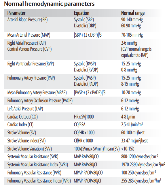 Hemodynamic parameters: